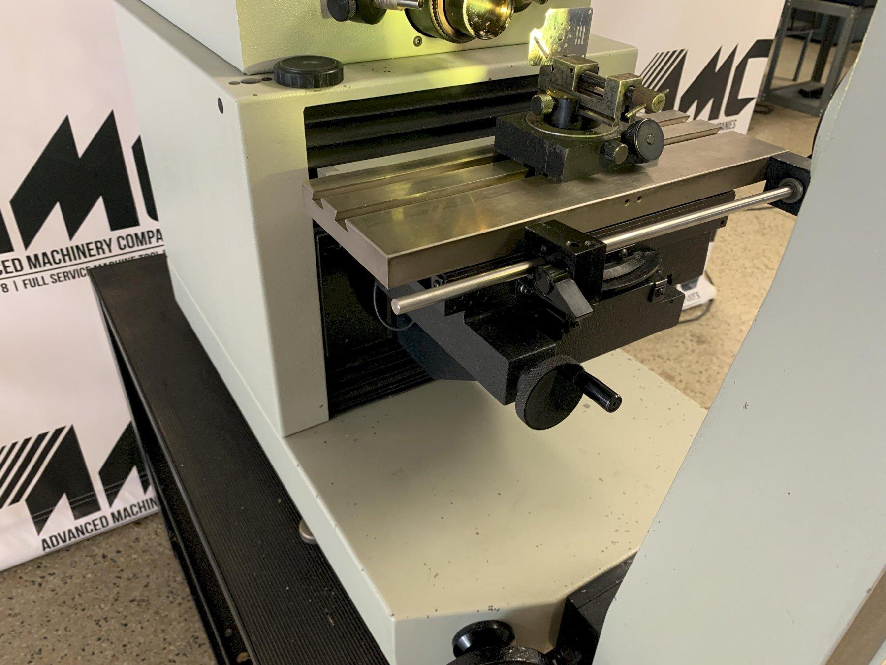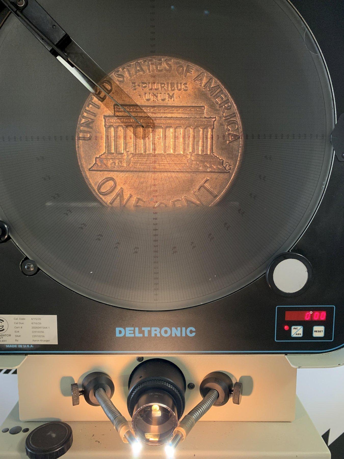 The Deltronic DH214 is a well-regarded, economical benchtop optical comparator from Starrett, offering a large 14" screen and solid precision for non-contact profile and surface inspection. This unit is equipped with modern digital conveniences including edge sensing and a computational dro that make measurements fast and accurate.